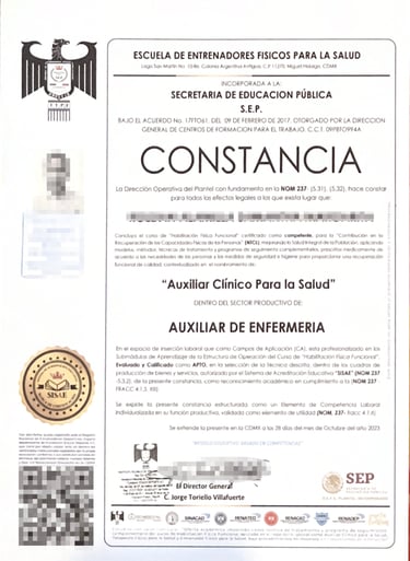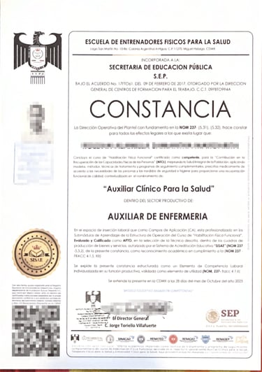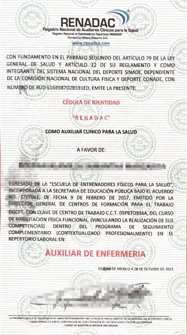 Es el título que otorga tu nombramiento de Clínico para la Salud dentro del programa de inserción laboral de tu elección. Se conforma por un número de folio único que de igual manera puede ser cotejado en la página de renadep.com que te avala como miembro activo de ANECFIS por SISAE como mecanismo que salvaguarda la identidad de nosotros como escuela.