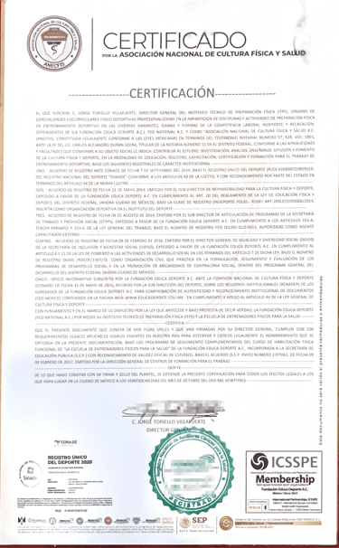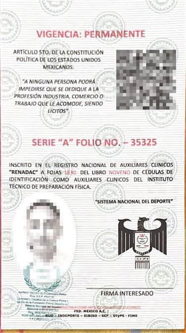 Mecanismo de identidad para que terceros acrediten la capacitación del interesado, funciona como mecanismo de control interno con fundamento en el artículo 43 y 44 de la Ley General de la Cultura Física y Deporte.